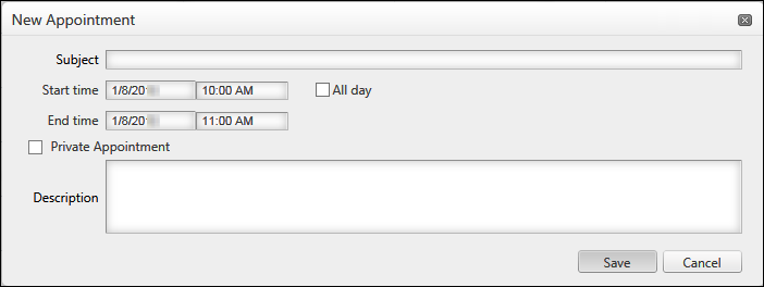 A private appointment appears on your calendar for viewing purposes only. An appointment does not require approval from an administrator.