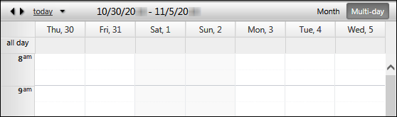 Use the Multi-day calendar to quickly view the events or appointments that you schedule within a seven-day period.