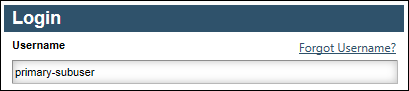 • In the Username field of the Login box, they must enter the primary user name, followed by a hyphen, and then followed by their assigned sub user name.