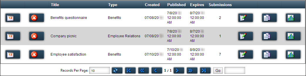 Use this procedure to change a survey’s expiration (or deactivation) date, or to shorten or lengthen the period of time it will be available to users. When a survey is created, its expiration date is automatically set to 30 days after the creation date. The survey will be automatically removed from view on the expiration date.