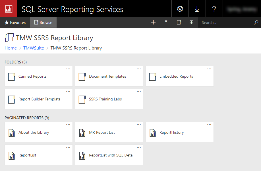 You access the SSRS reports by selecting the SSRS Report Library folder on the SQL Server Reporting Services home page.