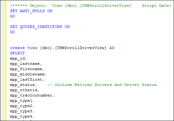 The scroll views determine which fields in which data tables are used as restrictions for a scroll window, as well as which ones will be listed as columns in the window’s data retrieval grid. Although the system is installed with one view for each scroll window, a Trimble system administrator can use SQL to enhance those views or create new views to meet each user’s needs.
