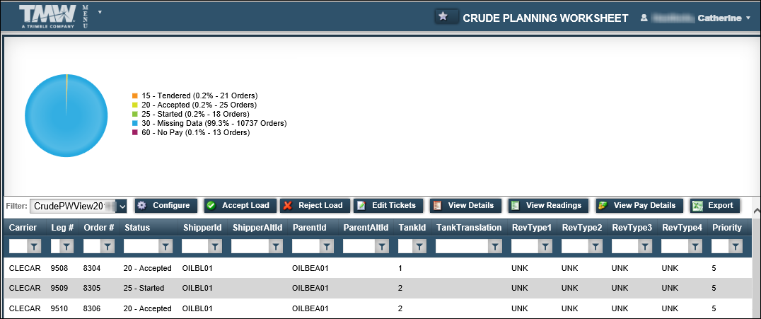 Accessing load, ticket, and pay information from the Crude Planning Worksheet