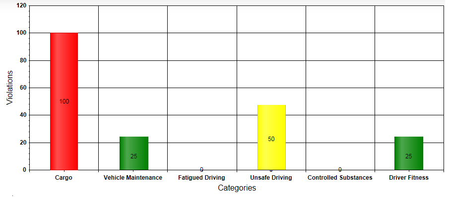 The height of the bar and the corresponding number indicate your percentile ranking within the organization for each BASIC category. The higher the rank, the worse your performance compared to the other drivers in the company with violations in the same category.