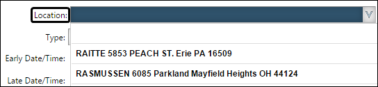 • Selecting the name and address of the company where the delivery will occur from the Location drop-down list