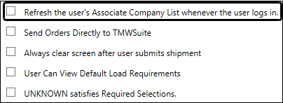 In the Miscellaneous section, select the Refresh the user’s Associate Company List whenever the user logs in check box.