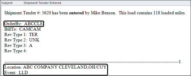 The Order By company is the company requesting the shipment. When users enter a new order on the Tender Shipment page, they must identify the Order By company.