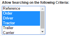 5. In the Allow Searching on the following Criteria field, select the criterion you want to include in the list. To include multiple criteria, press and hold CTRL or SHIFT when selecting.