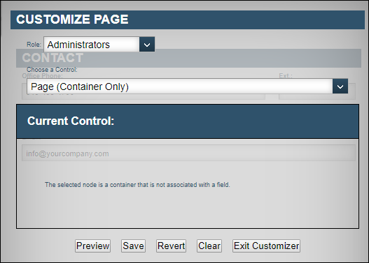 • Not all controls are customizable. Controls that are not customizable are shown in italics. They are designated as (Container Only). These controls are included in the list to reflect the organizational hierarchy of page elements.