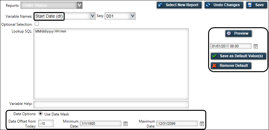 Use Date Mask as selected. Edit the mask in the Lookup SQL field. |